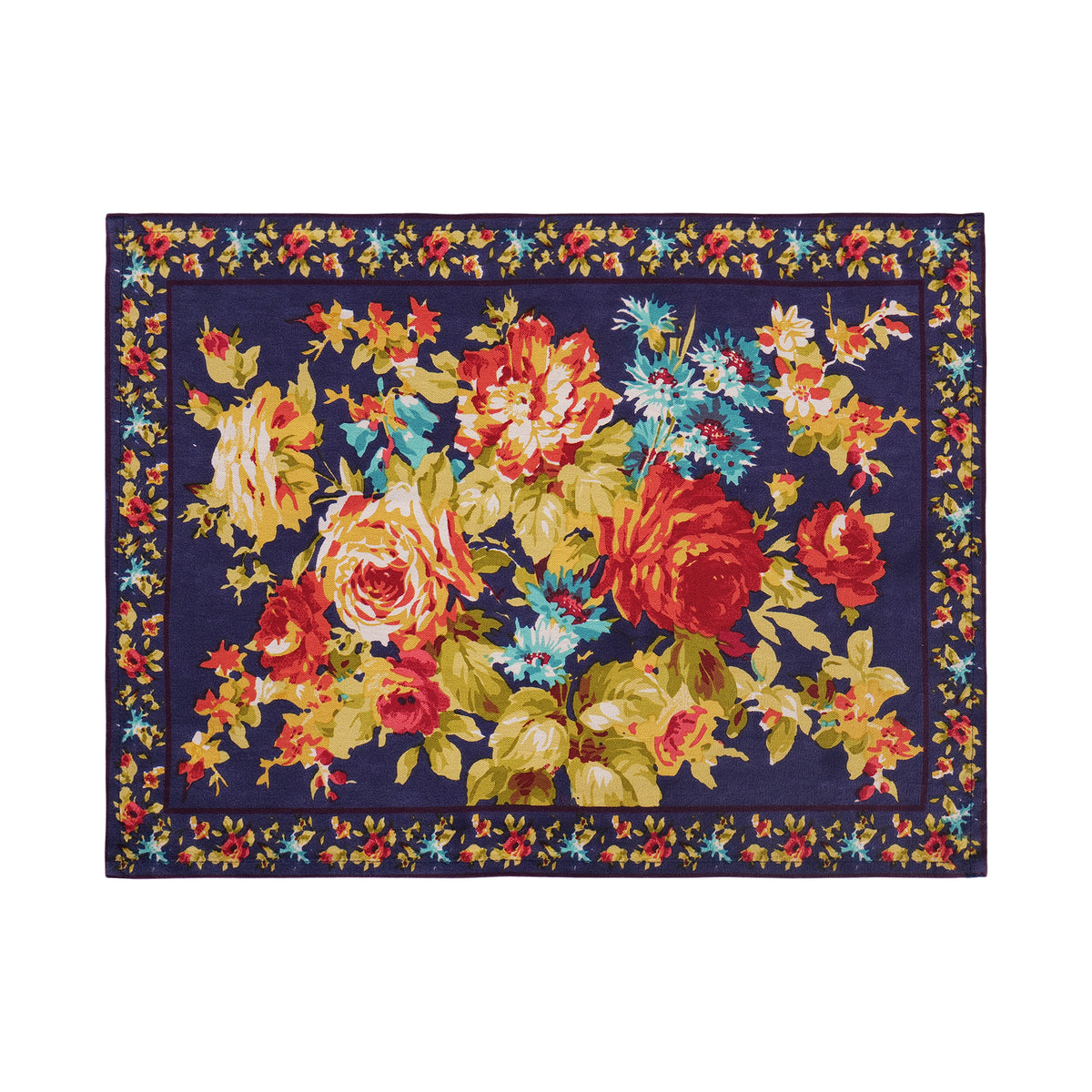 Cottage Rose Placemat & Napkin Combo Set of 6 – Ink - Napkin: 20X20 - Placemat: 14X20 / INK