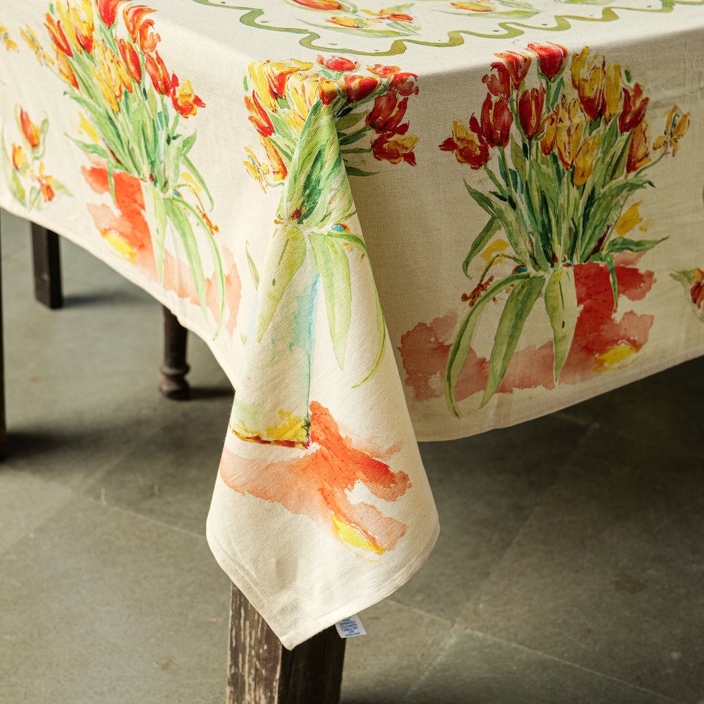 Infuse your dining space with the joyful charm of spring with our Tulip Dance Tablecloth. Adorned in a vibrant multi-colour inspired by blooming tulips this tablecloth brings freshness, color, and elegance to every meal. From 100% cotton it offers a soft, smooth texture and long-lasting durability. Perfect for both everyday dining and festive occasions, it’s a delightful addition that brightens your table with effortless beauty.