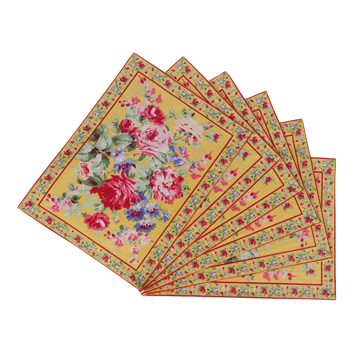 Bring cheerful charm and timeless style to your dining table with our Cottage Rose Cotton Placemat. From 100% pure cotton this set of six placemats features a delightful Yellow hue that adds brightness and warmth to any dining space. Designed for both beauty and practicality, these placemats are perfect for elevating everyday meals or creating a festive table setting.