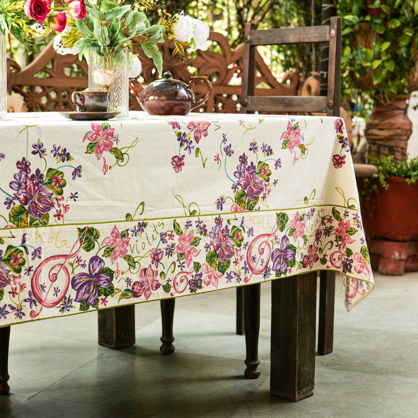 Add a touch of timeless charm to your dining experience with the Violets Tablecloth in a rich purple hue. Crafted from 100% premium cotton, this tablecloth combines elegance and practicality, offering a soft hand feel and natural texture ideal for both everyday dining and festive occasions.